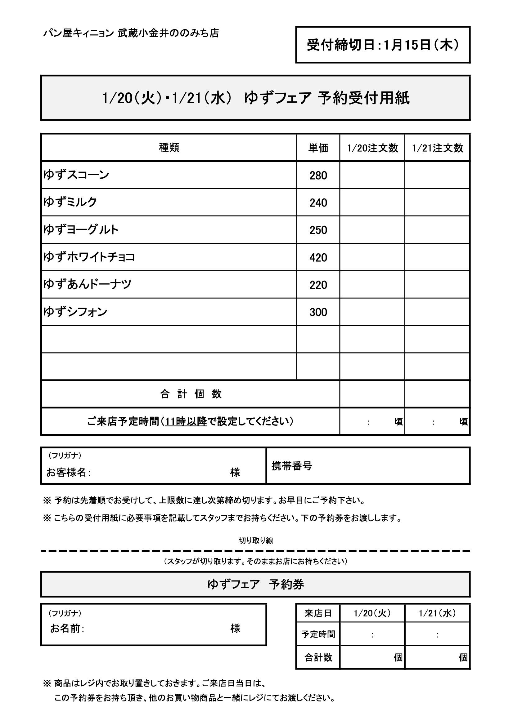 ■件名 「ゆずフェア予約」